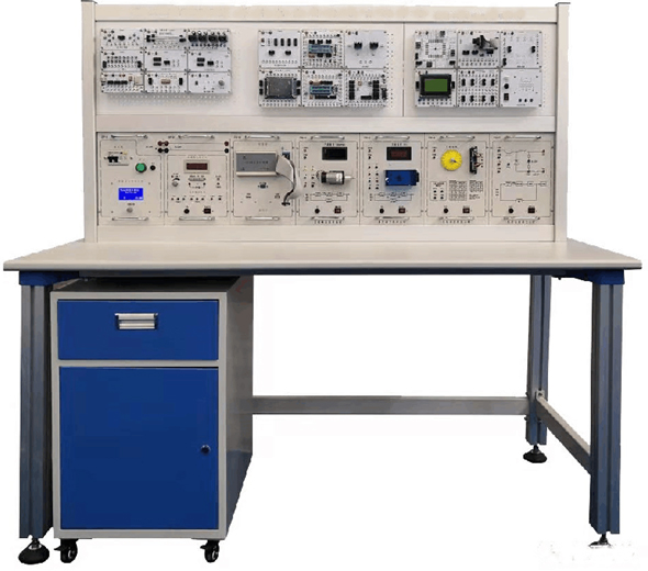 實訓臺主要有實訓桌和實訓臺架組成,實訓桌采用型材結(jié)構(gòu),桌腿采用4080型材,桌面為防火、防水、耐磨高密度板,結(jié)構(gòu)堅固,造形美觀大方。面板采用鋁板結(jié)構(gòu),操作面板文字符號用現(xiàn)代彩色噴描技術(shù)處理,具有防塵、美觀、耐磨、不掉色等特點。