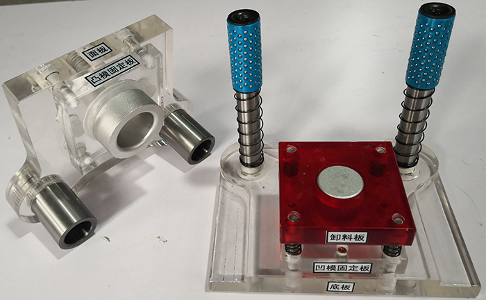在模具同一位置上能完成幾個(gè)不同的工序的模具.落料凹模在下模處,凸凹模在上模,卸料、凹模、凸凹模均需設(shè)有浮動(dòng)頂出結(jié)構(gòu),并能一次完成落料、沖孔工藝,下模設(shè)有擋料銷,各零件需精密定位,并有定位銷確保拆裝方便。 |