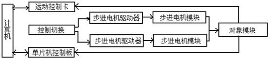 二維運(yùn)動控制實(shí)驗(yàn)平臺主要由步進(jìn)電機(jī)控制系統(tǒng)和電腦桌兩部分組成,結(jié)構(gòu)框圖如下圖所示: