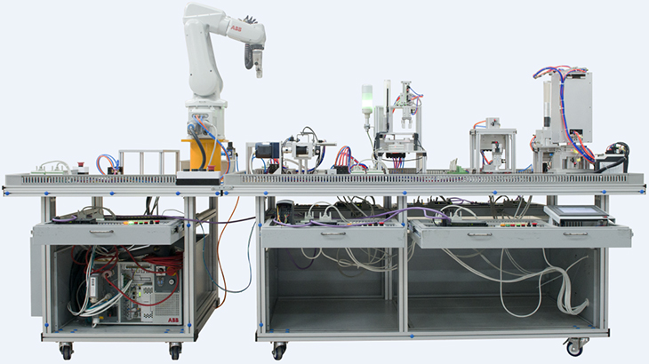 工業(yè)機(jī)器人循環(huán)生產(chǎn)線實(shí)訓(xùn)裝備,工業(yè)機(jī)器人智能生產(chǎn)線實(shí)訓(xùn)系統(tǒng)以工業(yè)化現(xiàn)場(chǎng)真應(yīng)用作為教學(xué)藍(lán)本,采用多種型式、多種規(guī)格、多種應(yīng)用組合成型的工業(yè)應(yīng)用生產(chǎn)線。主要以體現(xiàn)工業(yè)機(jī)器人典型應(yīng)用,讓學(xué)生撐握真實(shí)工業(yè)機(jī)器人現(xiàn)場(chǎng)應(yīng)用方法。通過(guò)以工業(yè)現(xiàn)場(chǎng)真實(shí)應(yīng)用案例實(shí)訓(xùn),縮短教學(xué)實(shí)訓(xùn)與工廠崗位應(yīng)用的差距。