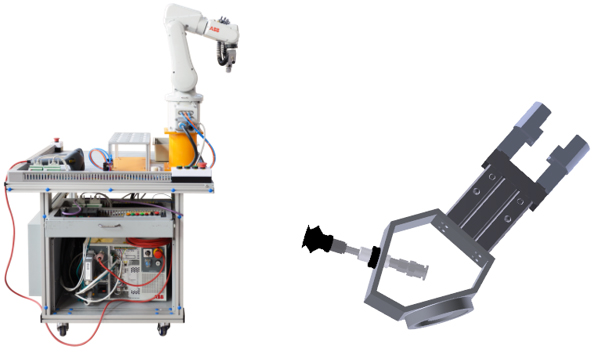 工業(yè)機(jī)器人循環(huán)生產(chǎn)線實(shí)訓(xùn)裝備采用1+1組合式結(jié)構(gòu)分別由安裝在鋁合金導(dǎo)軌式的實(shí)訓(xùn)臺(tái)上的送料單元、加工單元、裝配單元、雙層輸送單元、分揀單元5個(gè)單元,加上由鋁合金導(dǎo)軌式的實(shí)訓(xùn)臺(tái)上工業(yè)機(jī)器人碼垛單元兩大部分組合成多種組合方式的實(shí)訓(xùn)裝備。電氣布局采用抽屜式,所有其電氣控制器都安裝在網(wǎng)孔板式的抽屜上,這種機(jī)電分離的格式更加符合了工業(yè)實(shí)際情況。外觀如上圖所示。