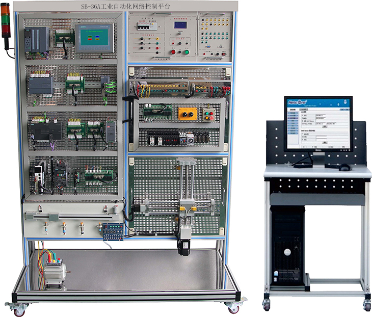 工業(yè)自動化網(wǎng)絡控制實訓平臺,工業(yè)控制網(wǎng)絡是近年來發(fā)展形成的自動控制領域的網(wǎng)絡技術(shù),是計算機技術(shù)、通信技術(shù)與自動控制技術(shù)相結(jié)合的產(chǎn)物,其主要包括現(xiàn)場總線技術(shù)和工業(yè)以太網(wǎng)技術(shù)。為了使院校自動化專業(yè)的學生能夠加深對工業(yè)控制網(wǎng)絡的理解,直接接觸和操作先進的工業(yè)控制設備,熟悉工業(yè)現(xiàn)場總線的原理和運行機制,使之走上工作崗位后能立即參與解決工程實際問題,我們研制了一套工業(yè)控制網(wǎng)絡綜合實驗系統(tǒng)。該實驗系統(tǒng)模擬工業(yè)現(xiàn)場實際情況,通過PROFIBUS總線和工業(yè)以太網(wǎng),建立主從站通信系統(tǒng),實現(xiàn)各類傳感器的實時數(shù)據(jù)采集和遠程監(jiān)控。同時,該實驗平臺還可以為現(xiàn)場總線技術(shù)、工業(yè)自動化與控制網(wǎng)絡、集散控制系統(tǒng)、工業(yè)自動化系統(tǒng)課程設計、過程控制等專業(yè)課程服務。