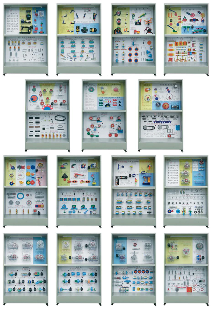 機(jī)械綜合陳列柜,該設(shè)備是根據(jù)大中專院校、職業(yè)學(xué)校的教學(xué)大綱設(shè)計(jì)的多功能機(jī)械綜合示教室是一套《機(jī)械原理》、《機(jī)械零件》、《減速器》共500余種模型,分三大類合并成的電化教學(xué)設(shè)備。共15個(gè)柜,30個(gè)板面。該設(shè)備采用新型觸摸液晶屏電腦控制主控臺(tái)。mpc解說(shuō),觸摸屏、遙控控制,聲控同步循環(huán)播放進(jìn)行演示;又根據(jù)教材,教學(xué)需要而任意選擇單獨(dú)運(yùn)轉(zhuǎn)演示。本產(chǎn)品的特點(diǎn):使作方便,占地面積小,結(jié)構(gòu)新穎實(shí)用,制作工藝更加美觀,整套設(shè)備演示形象逼真,運(yùn)行可靠,有效的提升了教學(xué)生動(dòng)性、趣味性及產(chǎn)品壽命。是一套現(xiàn)代化的機(jī)械課程示教室設(shè)備。