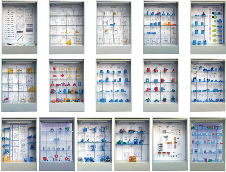 機(jī)械制圖陳列柜,適用于中專(zhuān)、職工中學(xué)、電視中學(xué)、職業(yè)高中機(jī)械類(lèi)專(zhuān)業(yè)的制圖教學(xué),亦可供其它相近專(zhuān)業(yè)使用或參考。為突出培養(yǎng)學(xué)生畫(huà)圖能力和看圖能力這條主線,對(duì)機(jī)械專(zhuān)業(yè)學(xué)生理論學(xué)習(xí),使用范圍增強(qiáng)認(rèn)識(shí),加深理解,本陳列柜是一套提高教學(xué)質(zhì)量的理想教學(xué)設(shè)備。