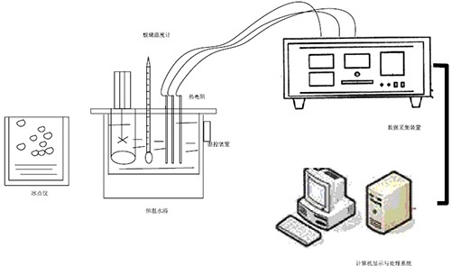 熱電偶實驗裝置主要由恒溫水浴、電位差計、熱電偶、熱電阻、冰點儀、數(shù)據(jù)采集裝置、低電勢轉(zhuǎn)換開關(guān)和標(biāo)準(zhǔn)玻璃溫度計等組成。恒溫水浴上具有攪拌、加熱與溫度控制裝置,可根據(jù)要求將溫度穩(wěn)定在設(shè)定值附近。采用標(biāo)準(zhǔn)玻璃溫度計測量的溫度作為標(biāo)準(zhǔn)溫度,用于校準(zhǔn)熱電偶和熱電阻。