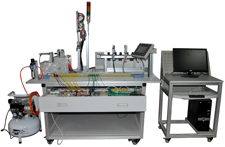 本設(shè)備主要包括實(shí)訓(xùn)臺架、典型的機(jī)電一體化設(shè)備的機(jī)械部件、PLC模塊、變頻器模塊、按鈕模塊、電源模塊、模擬生產(chǎn)設(shè)備實(shí)訓(xùn)模塊、接線端子排和各種傳感器等組成。整體結(jié)構(gòu)采用開放式和拆裝式,實(shí)訓(xùn)裝置用于機(jī)械部件組裝,可根據(jù)現(xiàn)有的機(jī)械部件組裝生產(chǎn)設(shè)備,也可添加機(jī)械部件組裝其他生產(chǎn)設(shè)備,使整個裝置能夠靈活的按教學(xué)或競賽要求組裝具有生產(chǎn)功能的機(jī)電一體化設(shè)備。